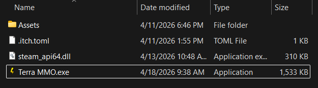 At this point, the client infrastructure is complete. As you can see in the image below, the client is only 1.5 MB. You can see the steam api and itch files, plus the Assets folder. Not too shabby.